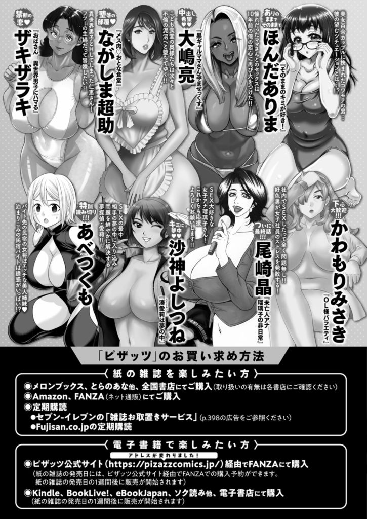 12月は師走…年の瀬ですね!年末年始を迎える為に色々な行事が行われますが、ピザッツ娘たちはキワド系の勝負した義に身を包み、あなたのクリックを待っています!かわいらしく着飾っていても、いざ本気になるとどうなるかわかりませんよ…!2026年2月号、発売です! 【巻頭カラー】佐藤はがね「銘酒屋ラビリント」」 【センターカラー】わづち直「姉・コンプレックス!」